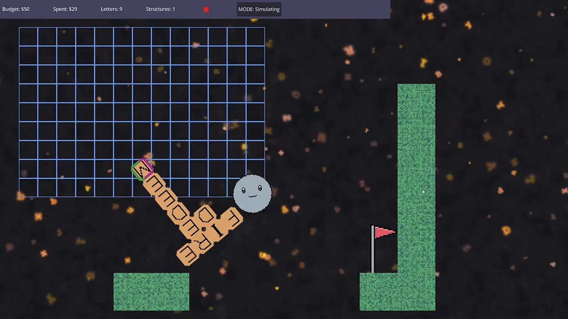 Create crosswords to solve physics-based puzzles! Different types of letter tile cost different amounts and do different things. In each level, your goal is to get the ball to the flag by writing words. The words you write will become physical objects in-game, and you can use them to build bridges, hammers, or even rocket ships to get your ball where it needs to go!